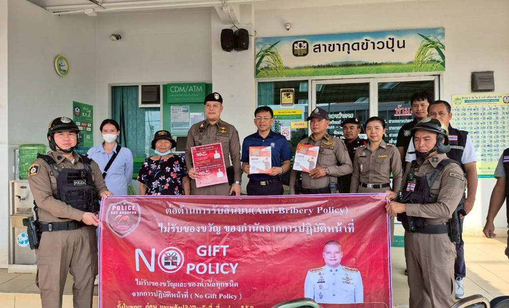 ลงพื้นที่ภายใน อ.กุดข้าวปุ้น จ.อุบลราชธานี เพื่อประชาสัมพันธ์การประกาศนโยบายต่อต้านการรับสินบน(Anti-Bribery Policy) และนโยบายไม่รับของขวัญของกำนัลจากการปฏิบัติหน้าที่(No Gift Policy)