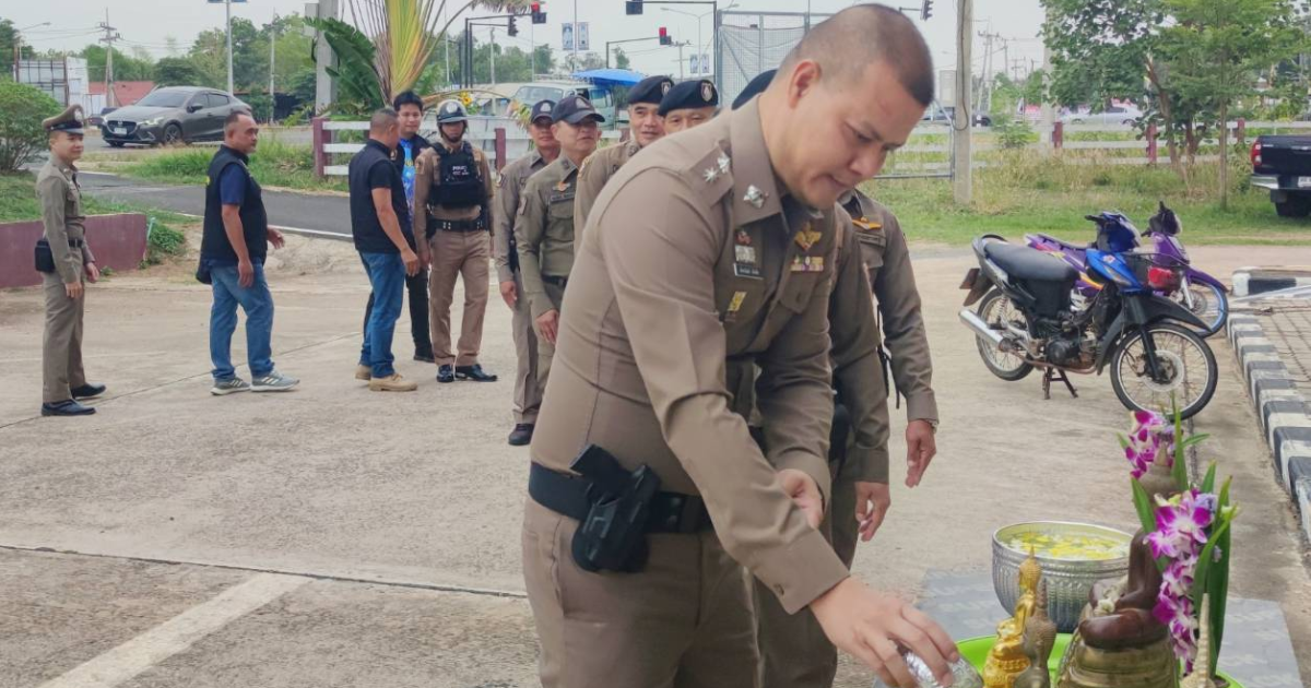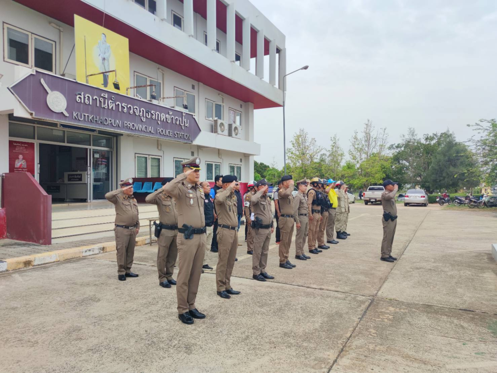 พ.ต.อ.ลัทธวัฒน์ เพ็งชัย ผกก.สภ.กุดข้าวปุ้น พร้อมด้วย ข้าราชการตำรวจ สภ.กุดข้าวปุ้น ร่วมเข้าแถวเครพธงชาติและสรงน้ำพระพุทธรูปประจำหน่วยงานเพื่อความเป็นสิริมงคล เนื่องในเทศกาลสงกรานต์ ประจำปี 2568