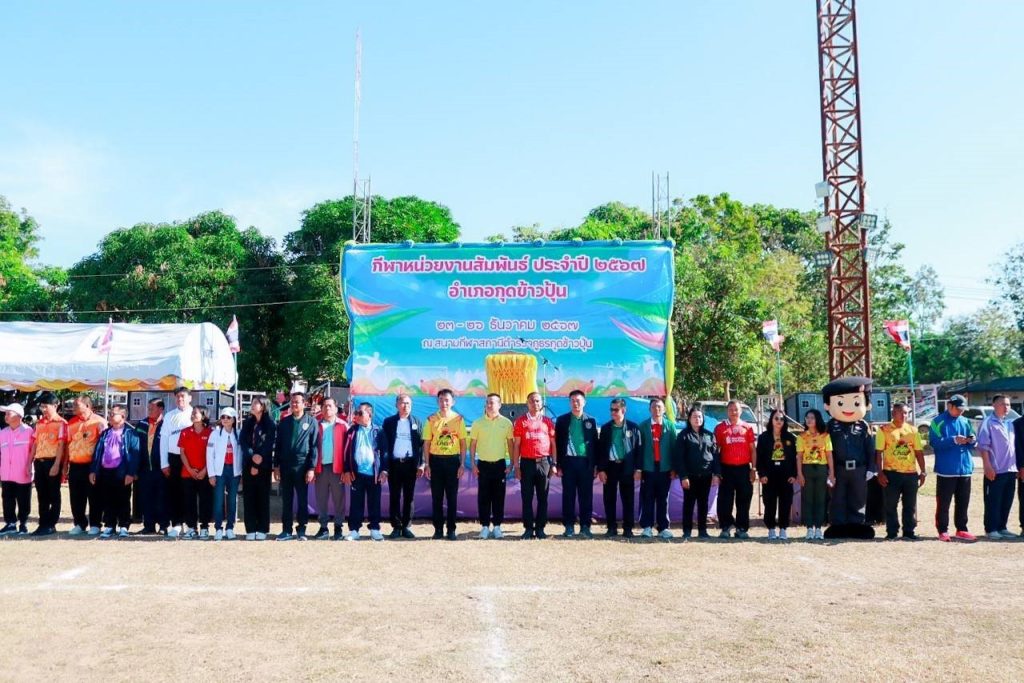หัวหน้าส่วนราชการ อำเภอกุดข้าวปุ้น พร้อมด้วยข้าราชการตำรวจ, เจ้าหน้าที่ฝ่ายปกครอง ข้าราชการ ลูกจ้างส่วนราชการ ประชาชน ร่วมการแข่งขันกีฬาหน่วยงานสัมพันธ์ ครั้ง ที่ 15 ประจำปี 2567 ณ บริเวณหน้าสถานีตำรวจภูธรกุดข้าวปุ้น โดยมี พ.ต.อ.ประสาน แก้วมหาสุริวงษ์ รอง.ผบก.อุบลราชธานี เป็นประธานพิธี