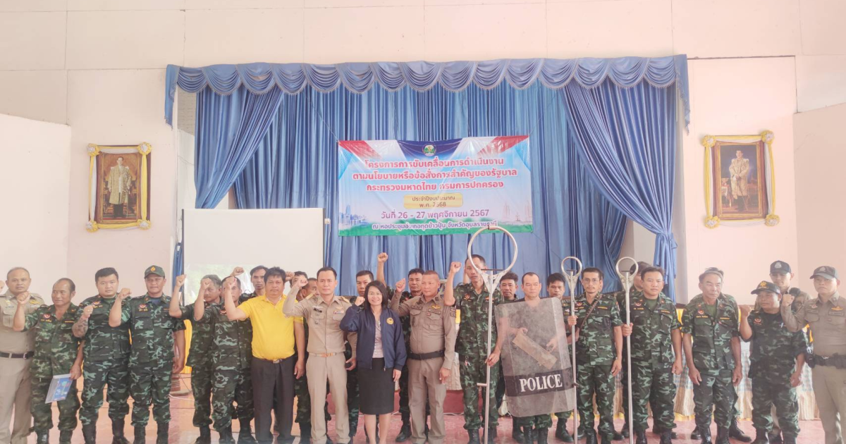 วันที่ 26 พ.ย.67 เวลา 13.00 น. พ.ต.ท.วิทยา นิตยสุข สวป.สภ.กุดข้าวปุ้น พร้อมด้วย ชุดวิทยากร สภ.กุดข้าวปุ้น ร่วมบรรยาย ห้วข้อ การเสริมสร้างศักยภาพ กำนัน ผู้ใหญ่บ้าน ผู้ช่วยฯ ในการรักษาความสงบเรียบร้อยตามบทบาทหน้าที่ ตามโครงการขับเคลื่อนการดำเนินงานตามนโยบายหรือข้อสั่งการของรัฐบาลฯ ณ หอประชุมอำเภอกุดข้าวปุ้น จังหวัดอุบลราชธานี