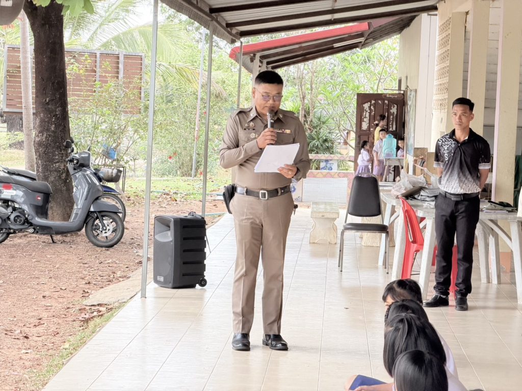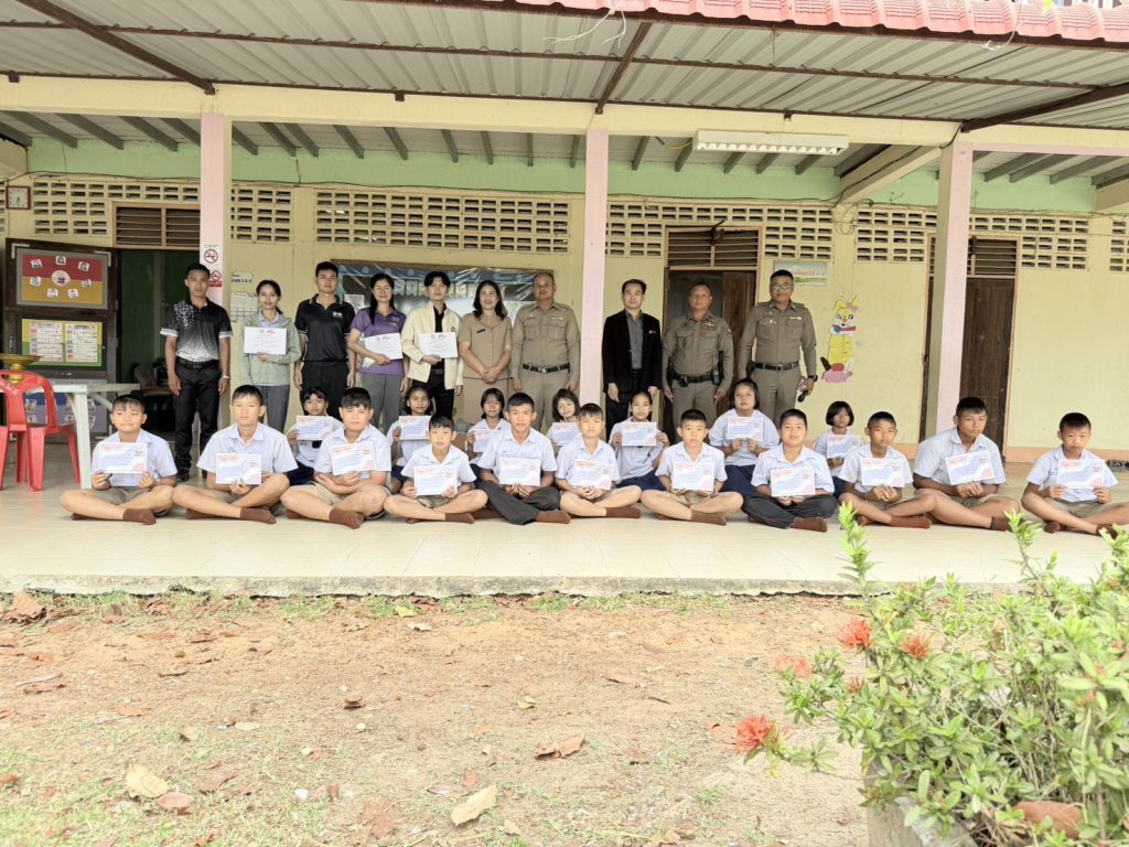สภ.กุดข้าวปุ้น จัดพิธีมอบใบประกาศนียบัตร โครงการการศึกษาเพื่อต่อต้านการใช้ยาเสพติดในเด็กนักเรียน DARE ประเทศไทย วันที่ 5 มีนาคม 2569 เวลา 08.30 น. ภายใต้การอำนวยการของ พ.ต.อ.รักพงษ์ บัวเทียน ผู้กำกับการสถานีตำรวจภูธรกุดข้าวปุ้น มอบหมายให้ พ.ต.ต.วิทยา นิตยสุข สารวัตรป้องกันปราบปราม สภ.กุดข้าวปุ้น นำชุดครูตำรวจแดร์ จัดพิธีมอบใบประกาศนียบัตรให้แก่นักเรียนที่สำเร็จหลักสูตร ตามโครงการการศึกษาเพื่อต่อต้านการใช้ยาเสพติดในเด็กนักเรียน DARE ประเทศไทย พร้อมกล่าวขอบคุณคณะครูและนักเรียนที่ให้ความร่วมมือในการดำเนินโครงการเป็นอย่างดี และมอบสิ่งของที่ระลึกเพื่อแสดงความขอบคุณ ณ โรงเรียนหนองกุง ดอนตาเขสามัคคี ตำบลแก่งเค็ง อำเภอกุดข้าวปุ้น จังหวัดอุบลราชธานี โดยผลการปฏิบัติเป็นไปด้วยความเรียบร้อย